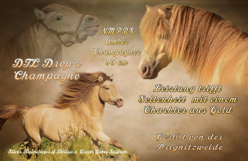 🌟DTL Drops Champagner – Leistung, Charakter & seltene Farbe vereint 🌟 zugelassen als Veredler der Dt. Partbredshetlandponys Ein Hengst, der alle Blicke auf sich zieht: DTL Drops Champagner – 2020 geboren und aufgezogen in den Niederlanden. Bereits früh zeigte er sich als Vererber mit besonderem Potenzial: In seiner Heimat wurde er erfolgreich gekört und brachte dort schon einige vielversprechende Fohlen. Mit seiner seltenen und faszinierenden Amber-Champagne-Farbe ist er nicht nur optisch ein Hingucker, sondern überzeugt auch durch seine Qualitäten als Leistungshengst. Im April 2025 kam er nach Deutschland, erhielt hier eine solide Grundausbildung im Fahren und stellte sich anschließend am 09.08.2025 in Redefin der Leistungsprüfung. Dort brillierte er mit einer Endnote von 8,59 Punkten und wurde Reservesieger – seither darf er den Titel FN-Leistungshengst tragen. Zudem ist er im Hengstbuch I eingetragen- ein weiteres Qualitätsmerkmal für seine züchterische Wertigkeit. Mit seinem kompakten Stockmaß von 95 cm vereint DTL Drops Champagne Ausdauer, Arbeitswillen und Bewegungsstärke mit einem außergewöhnlich gelassenen Wesen. Er ist klar im Kopf, stets motiviert vor dem Wagen und so brav, dass selbst Kinder ihn sicher händeln können. Genetisch ist er bestens getestet: Skelettavatismus (SA) negativ und Zwergenwuchs (ACAN) negativ. ✨ Besonderheit: Seine seltene Champagnerfarbe macht ihn zu einem genetischen Schatz. Er ist mischerbig, vollständig farblich getestet und er ist ein sogenannter Pseudofalbe. In seiner ersten deutschen Decksaison 2025 durfte er bereits einige ausgewählte Stuten bedecken. Die ersten in Deutschland gezogenen Fohlen werden 2026 das Licht der Welt erblicken. Auch in der Decksaison 2026 wird er wieder einer begrenzten Anzahl von Stuten zur Verfügung stehen – für Züchter, die Wert auf Exterieur, Leistungsbereitschaft und eine besondere Farbvererbung legen. ✨ DTL Drops Champagne – ein Hengst mit Seltenheitswert, erstklassiger Leistung und dem Herz am rechten Fleck. ✨Der Hengst steht im Jahr 2026 einigen Stuten zur Verfügung. ✨Genauere Deckanfragen gerne per Anruf oder Mail.