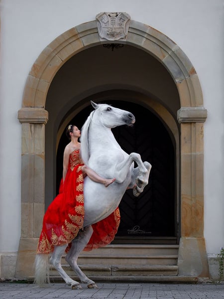 Siglavy is a 12-year-old Lipizzaner gelding with extraordinary movement. Standing at 16.1 hh, he is a true artistic horse and an exceptional model for photography. Sigi is highly experienced and performs elements such as piaffe, passage, pirouettes at canter, lateral movements, leg changes, Spanish walk, and even lying down. He works freely in liberty and knows many tricks, including rearing, bowing, sitting, lying down, Spanish walk, and balancing exercises. This gelding is an ideal partner for both experienced riders and those just beginning their dressage or liberty training journey. This white gelding fulfills the dream of owning a truly special horse. He is beautiful, friendly, and calm in all activities, including turnout, shoeing, tacking up, transport, and riding in the fields. Location: Podkarpackie Voivodeship Piro-free Current X-rays available For more information, please contact me via WhatsApp at 0048609466153.