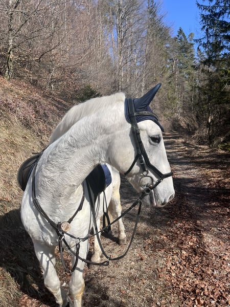Incitato Dani, affectionately called Lippi by me, is a 2011-born Lipizzaner gelding. He is ridden recreationally on the riding arena and worked from the ground. He is not spooky at the riding arena and demonstrates a solid basic training. He particularly enjoys ground work and is always eager to learn new things. Occasionally, we also jump small obstacles, although we lack the experience and confidence for more advanced jumping. Currently, Lippi is kept in a paddock box and during the day, he goes out with his horse friends to a paddock or pasture. He is extremely social, loves to play with others, and gets along well with other horses. In the hierarchy, he tends to stay in the middle to lower ranks. Lippi has been regularly vaccinated, dewormed, and his teeth have been consistently checked and maintained. He is shod on all four hooves. During rides, Lippi can be a bit unsure and tends to follow other horses, but riding alone is also no problem. He is comfortable in water and loads onto the trailer willingly. Lippi needs a consistent handler he can trust. Once he has that, he will go through thick and thin with his person. Due to personal changes, I have decided to find him a new home. As he is very dear to me, the well-being of the horse takes priority over the price! He is not suitable for beginners, as he requires a confident handler to give him security. Lippi is being sold with all accessories (saddle, bridle, blankets, etc.). We look forward to meeting you!