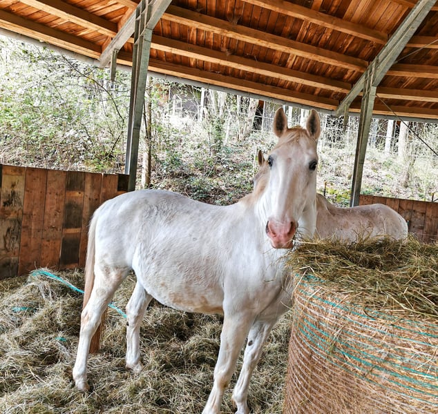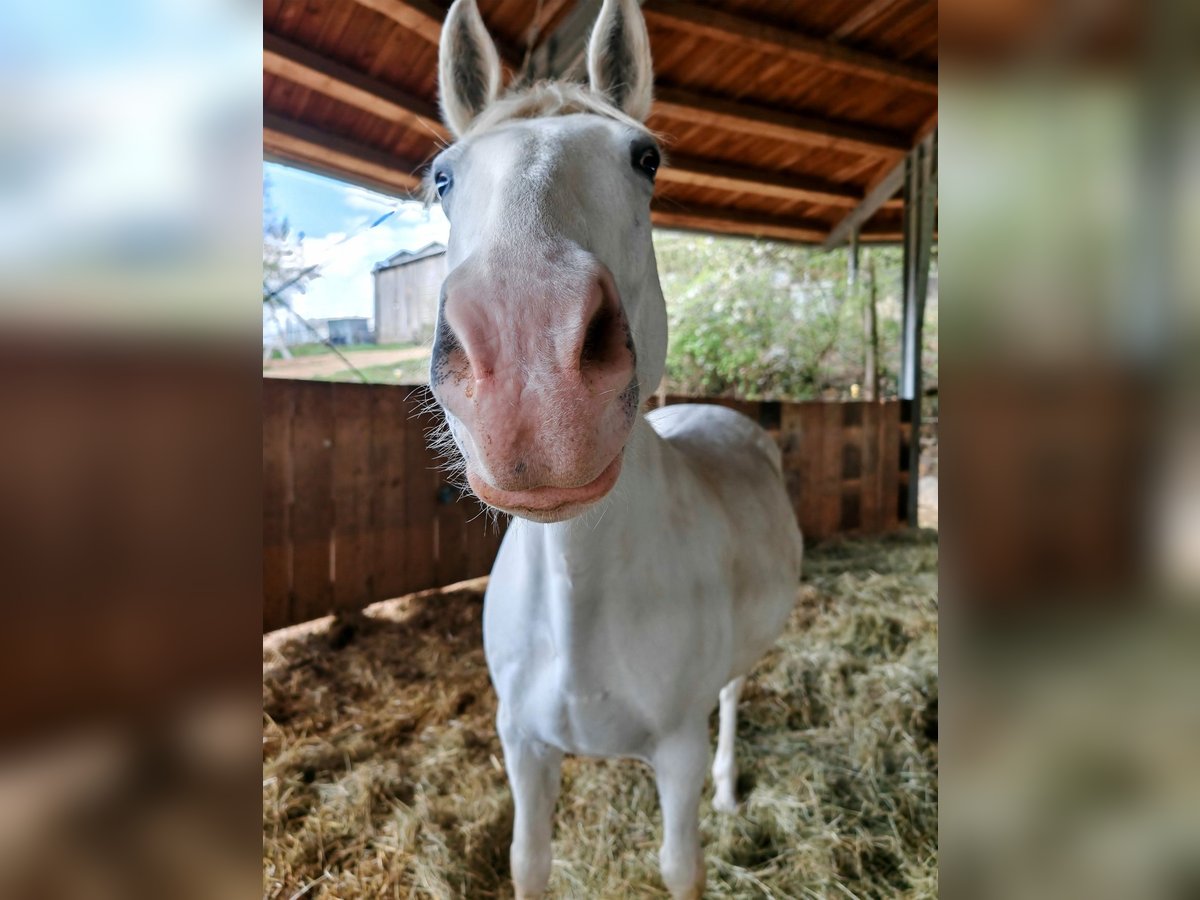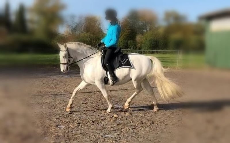 Zum Verkauf steht ein 15-jähriger Lipizzaner-Schimmel mit großer Motivation zur Mitarbeit. Der Schwerpunkt seiner Ausbildung lag überwiegend in der Bodenarbeit. Aufgrund einer längeren, ausschließlich besitzerbedingten Trainingspause (nicht pferdebedingt) sowie der bewussten Ausrichtung auf Bodenarbeit wurde er unter dem Sattel insgesamt noch weniger gearbeitet. Er ist dabei jedoch zu jeder Zeit motiviert und kooperativ gewesen. Unter dem Reiter wird er nun langsam wieder in Schritt und Trab geritten, der Galopp ist ausbildungsbedingt noch ausbaufähig. Dabei ist er stets bemüht alles richtig zu machen. Besonders hervorzuheben ist seine Verspieltheit – er liebt Apportieraufgaben, abwechslungsreiche Bodenarbeit und die Zusammenarbeit mit „seinem“ Menschen. Er sucht einen ruhigen, sicheren und einfühlsamen Reiter, der Freude an feiner Kommunikation, Bodenarbeit und behutsamem Aufbau unter dem Sattel hat. In den richtigen Händen bringt er viel Potenzial mit und möchte weiter gefördert werden – ohne Druck, dafür mit Geduld und Klarheit. Er kann in neuen oder ungewohnten Situationen auch einmal etwas aufgeregt reagieren und benötigt daher einen ruhigen, sicheren Reiter, der ihm Orientierung, Vertrauen und Sicherheit vermittelt. Kein Anfängerpferd, sondern ein feiner Partner für einen erfahrenen Reiter, der seine Intelligenz schätzt und seine Ausbildung sinnvoll weiterführt. Das Bild unter dem Reiter ist nicht aktuell, nur zur einschätzung seiner Größe. Die Reiterin ist 1,79m groß und wird gut abgedeckt von ihm. Banzai gehört bei uns zur Familie und wird nur an einen Bestplatz abgegeben. Weitere Information gerne persönlich.