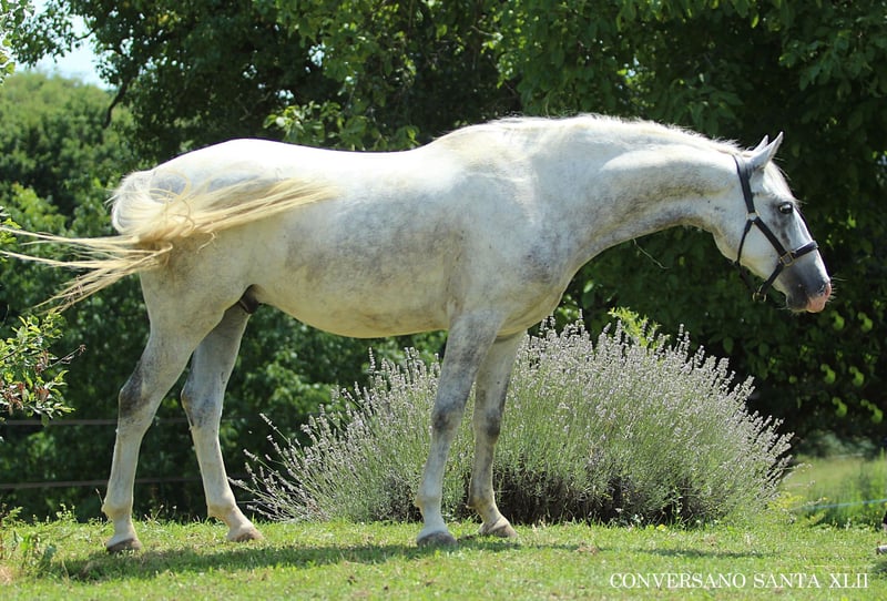 ⚜️ CONVERSANO SANTA XLII Le petit grand danseur ! 🌟 5 ans | Étalon | 147 cm Nommé Bruno 😁 Certains chevaux ont simplement le groove – et ce jeune Lipizzaner en fait définitivement partie ! Un mouvementur agile, qui se déplace avec une légèreté et une élégance naturelles. En paddock, il montre tout ce qu’on peut désirer : levade, capriole, changements volants – tout cela de manière spontanée, ludique, avec plaisir dans le corps. 💫 ✨ Vif et compact – c’est probablement la meilleure façon de décrire Bruno. Un cheval idéal pour la relève, que ce soit pour la Working Equitation ou la Haute École. C’est un cheval tout en finesse, parfait pour une cavalière délicate à la recherche d’un partenaire sensible, intelligent et fin, qui aime travailler. 💕 Sara travaille beaucoup avec lui à pied, et il est prêt à être doucement mis en selle. 👍 📩 Plus d’informations volontiers par WhatsApp : 📞 +386 68 129 392 – Angelika www.hof-der-lipizzaner.com