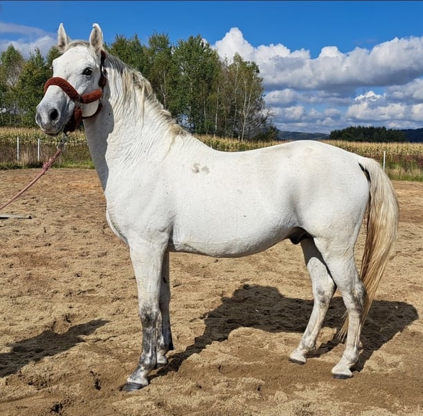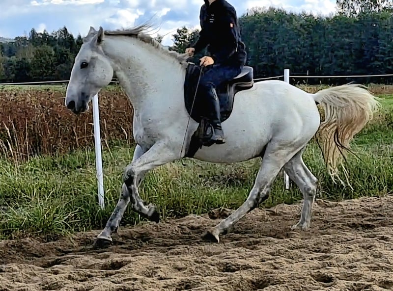 A wonderful boy looking for his person – a true partner for mutual growth and everyday conversation. Maestoso Szultan is a truly exceptional grey horse, standing around 160 cm tall and 7 years old. Lipizzaner with full pedigree. He is incredibly sensitive to cues, yet undeniably safe – a combination that’s truly rare. He has not been overworked; he’s been in my hands for over 4 years, spending most of his time out on pasture with friends. Occasionally ridden out in the countryside, and only recently started training in the arena. He works beautifully on the bit, bitless, on cordeo, or completely free. Despite his short experience in formal training, he turned out to be a real professor of a horse. As long as the rider gives precise cues, Sułtan performs new, previously unknown dressage elements as if he had been doing them for years. He’s gifted with captivating movement in all three gaits. Combined with his exceptional softness and willingness to work with humans, he has the perfect potential to become a partner for higher-level dressage. I haven’t mentioned his gender earlier on purpose — at the moment, there’s a possibility to purchase Sułtan either as a stallion or gelded (in November, most likely only the latter 😉). He lives peacefully in a herd with other geldings and stallions. I’m only looking for a new home for him because our goals and predispositions differ. 📍 Location: 38-471, Poland 📞 WhatsApp: +48 575 589 516