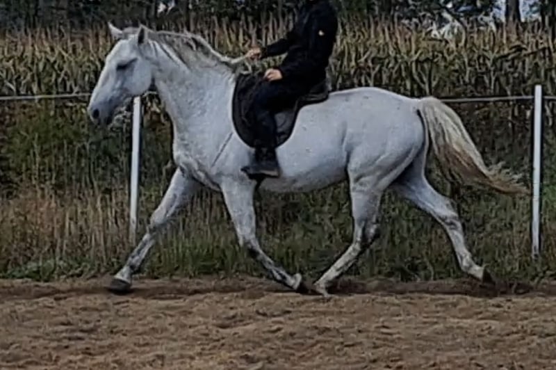 Ein wunderbarer Junghengst sucht seine passende Person – einen echten Partner für gemeinsames Wachstum und tägliche Gespräche. Maestoso Szultan ist ein außergewöhnliches Graufahrpferd, etwa 1,60 m groß und 7 Jahre alt. Ein Lipizzaner mit vollständigem Pedigree. Er ist äußerst sensibel für Hilfen, gleichzeitig aber auch absolut zuverlässig – eine Kombination, die wirklich selten ist. Er wurde nie überfordert; ich habe ihn über vier Jahre lang betreut, wobei er die meiste Zeit gemeinsam mit Freunden auf der Weide verbracht hat. Gelegentlich wurde er im Gelände geritten, und erst vor Kurzem hat er mit dem Training im Viereck begonnen. Er arbeitet wunderbar am Zügel, sowohl gebisslos, auf Cordeo als auch ganz frei. Trotz seiner noch kurzen Erfahrung im formellen Training hat er sich als wahrer Pferdeprofessor erwiesen. Solange der Reiter präzise Hilfen gibt, führt Sułtan neue, bisher unbekannte Dressurlektionen, als hätte er sie schon seit Jahren geübt. Er begeistert mit anziehendem Bewegungsfluss in allen drei Gängen. Zusammen mit seiner außergewöhnlichen Sanftheit und seiner Bereitschaft, mit Menschen zu arbeiten, besitzt er das perfekte Potenzial, ein Partner für höherklassigen Dressursport zu werden. Ich habe sein Geschlecht absichtlich erst jetzt erwähnt – momentan besteht die Möglichkeit, Sułtan entweder als Hengst oder, voraussichtlich ab November, nur noch als Wallach zu erwerben 😉. Er lebt friedlich in einer Herde mit anderen Wallachen und Hengsten. Der Grund für die Abgabe ist, dass unsere Ziele und Veranlagungen unterschiedlich sind. 📍 Standort: 38-471, Polen 📞 WhatsApp: +48 575 589 516
