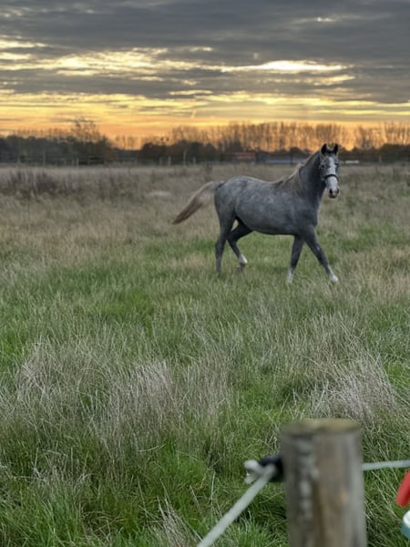Dieses junge Springpferd im Gelände ist eine vollslovenische Stute, geboren in Belgien. Ihre Mutter, Trofetta VII, wurde damals in Slowenien von dem hübschen Deckhengst Pluto Famosa V (Lipica) gedeckt und anschließend zu uns gebracht. Ihre Mutter wurde in Lipica vorgestellt und erzielte eine beeindruckende Bewertung von 74 Punkten! Sie ist halfterführig, gechippt, regelmäßig entwurmt, kennt den Schmied und ist sehr neugierig. Sie wächst in einer kleinen Herde mit unseren anderen jungen Pferden auf, die zum Verkauf stehen. Ihr Rufname ist Filou.