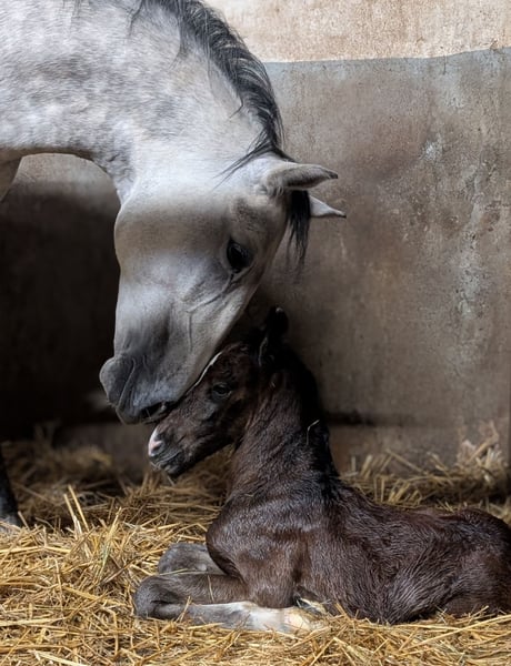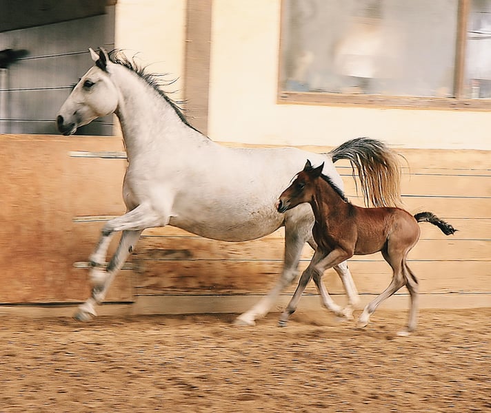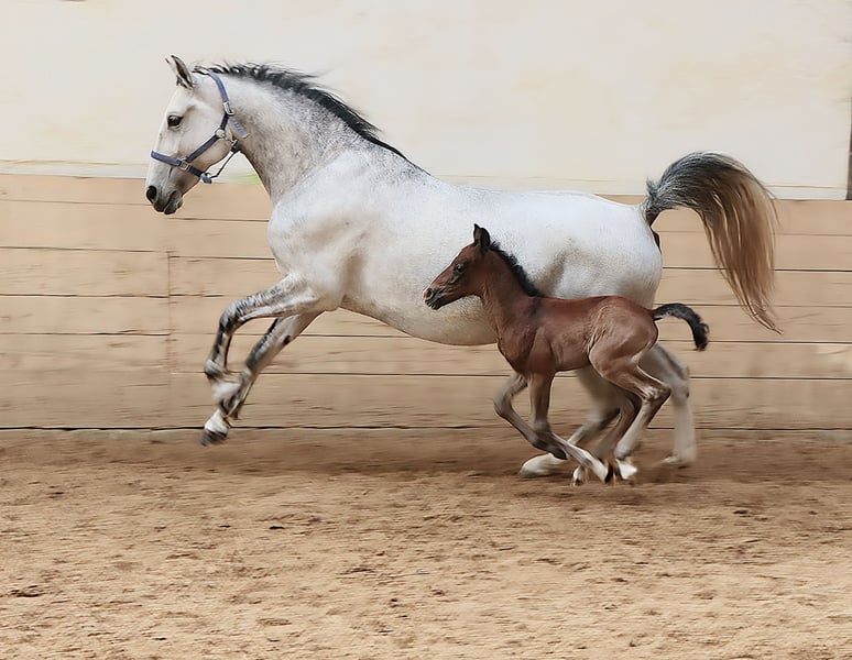Ihre Besitzer suchen unser Lipizzaner Hengstfohlen Maestoso Samira (Grisu) sowie seine Mutter Samira. Ein besonderes Angebot, das wir gerne erklären möchten. Bereits Anfang des Jahres stand fest, dass wir für eine unserer jüngeren Stuten ein neues Zuhause suchen werden. Wir können nicht alle Pferde behalten und müssen hier immer wieder klare Entscheidungen treffen. Die Entscheidung fiel auf Samira. Da sie ihr erstes Fohlen bei Fuß hat, könnten wir uns vorstellen, dass beide gemeinsam umziehen dürfen. Sie wären natürlich aber auch getrennt voneinander (nach dem Absetzen im Herbst) verfügbar. Mutterstute Samira Rasse: Lipizzaner (L.I.F.) Geburtstag: 23.05.2019 Vater: Maestoso X Mahonia Mutter: Sabrina Farbe: Schimmel Stockmaß: 1,54 m Ausbildungsstand: geritten auf ca A-Niveau Samira stammt aus unserer Zucht. Sie ist eine temperamentvolle Stute, die sich lipizzanertypisch sehr an einen Menschen bindet und immer etwas Zeit in neuen Situationen braucht. Sie ist gut geritten in Bahn und Gelände, steht sehr fein an den Hilfen, ist eifrig und sitzbequem. Bei uns wurde sie bereits im Reitunterricht von erfahrenen Reitschülern geritten, zeigt sich aber auch mit Kindern an der Longe oder bei geführten Ausritten absolut brav und zuverlässig. Sie hat nun ihr ersten Fohlen bei Fuß. Hengstfohlen Maestoso Samira (Grisu) Rasse: Lipizzaner (L.I.F.) Geburtstag: 02.03.2026 Farbe: Schimmel Vater: Maestoso Dalmatia Mutter: Samira erwartetes Endstockmaß: 1,55 m - 1,60 m Grisu kam als erstes Fohlen seiner Mutter Samira Anfang März auf die Welt. Er überzeugt von Beginn an mit seinem Charme und seinem auffallenden Bezug zu Menschen. Er ist ein kleiner Strahlemann, geht auf jeden Menschen und jede Situation offen und mutig zu und zeigt sich beim Erlernen des Fohlen ABCs sehr gelehrig und brav. Er hat einen sehr schönen Rassetyp, ist korrekt gebaut und zeigt gute Gangveranlagungen. Grisu ist hier "everybodys Darling", jeder Besucher verharrt bei ihm und ist angetan von seinem Ausdruck und seiner fröhlich, lieben Art. Grisu wird mit Sicherheit später ein toller Partner für Reiter oder Fahrer, ein Pferd mit dem man Freude, Spaß und einen besten Freund haben wird. Sein Vater ist unser Deckhengst Maestoso Dalmatia (Nepomuk), der durch seine bisherigen Nachzuchten (seit 2021), seinem Rassetyp, seinen Gängen, seinem exzellenten Charakter und seiner Zuverlässigkeit unter dem Sattel überzeugt. Die Fohlen wachsen bei uns gemeinsam mit anderen Fohlen und täglichem Menschenkontakt auf. Sie lernen verschiedene Tiere und Alltagssituationen kennen und werden von uns bestmöglichst auf ihr weiteres Leben vorbereitet. Grisu erhält ein L.I.F. anerkanntes Pedigree vom Verband der Lipizzanerzüchter in Österreich. Der Preis bezieht sich auf Stute mit Fohlen.
