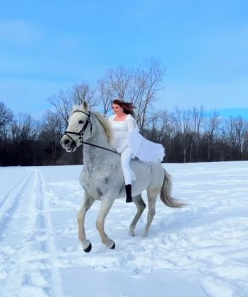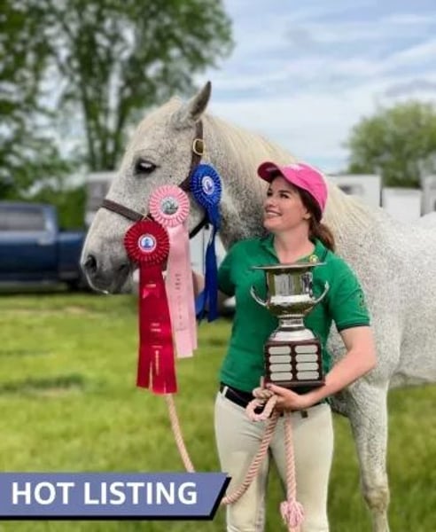 - Piaffe/Passage - Performs Spanish walk - Leg yields, side passes - Flying lead changes - Sits, bows, lays down on command - Eventing, pony club, local shows, team trials, Fox Hunting - Jumps over 4’ and LOVES it - In your pocket personality - Neck reins, Spins and Trick Roping - Excellent ground manners - Trail, Traffic safe, Not Spooky - Clean X-rays - Sound and barefoot - No maintenance required - UTD on everything - Successfully competed in all three rings, has won trophies, loads of ribbons, ect. - At least an intermediate level rider recommended but yes children have ridden him and he does wonderful https://youtu.be/yf1CWLMTtOI?si=NULEBrGSxUFZgGqd Comes with his fitted dressage saddle, winter blankets, summer fly sheet, fly boots, leather halter, his bridles and bits. I just want him to go with what he is used to and feel comfortable. Loads of videos and photos available upon request, only selling him due to my health issues. I am entertaining serious offers to the right home, he is just such a spectacular, elastic, friendly, fun guy