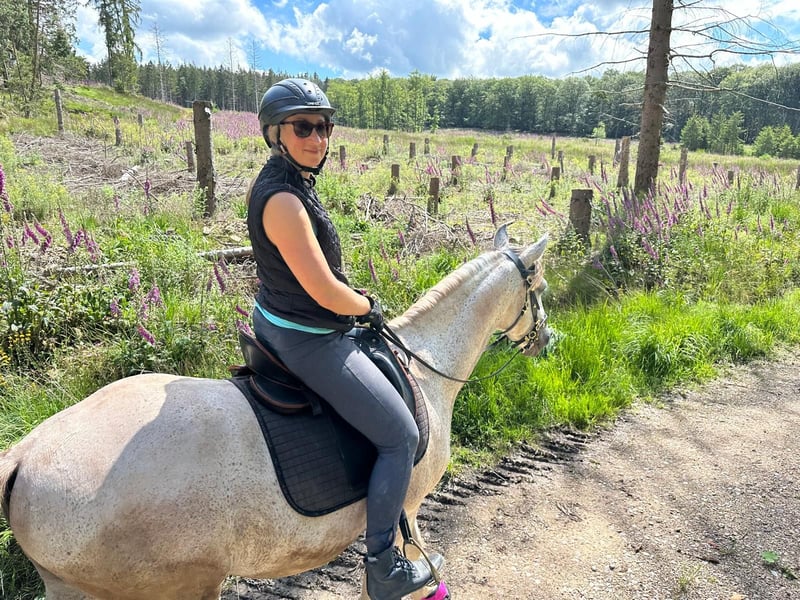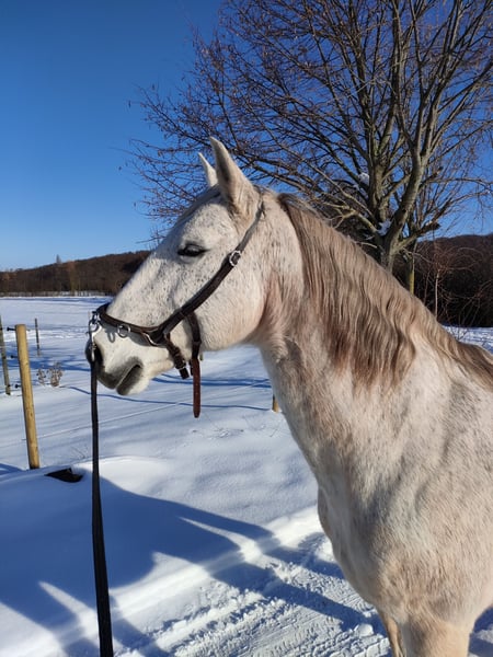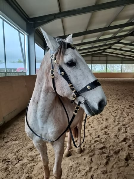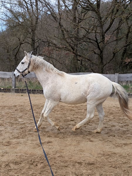 Zum Verkauf steht ein sehr Menschen bezogener 16 Jahre alter Lusitano. Florim ist sensibel und immer bemüht seinem Menschen zu gefallen. Er ist im Umgang sehr brav und genauso beim Reiten. Momentan geht er hauptsächlich ins Gelände, kennt aber die Arbeit in der Halle/Platz genauso. Er ist ausgebildet in allen Seitengängen im Schritt und Trab. Travers im Galopp, Galoppwechsel und Ansätze der Piaffe und Spanischer Schritt sind auch vorhanden. Ins Gelände geht er entspannt alleine und auch in der Gruppe. Er ist ein sehr leistungsbereiter Lusitano und gibt Tempo, wenn man danach fragt. Er ist sehr wendig und reagiert sofort auf seinen Reiter. Er geht barhuf, ins Gelände meistens mit Hufschuhen. Verladefromm, geimpft, entwurmt und regelmäßig beim Zahnarzt ist er auch. Im Sommer sollte er mit einer Decke vor Fliegen geschützt sein, weil er sich sonst gerne schubbert. Exzemer ist er aber nicht. Er kann in Herdenhaltung stehen, aber nur mit Wallachen die sich unterordnen, da er immer der Ranghöchste sein will. Aktuell steht er im Winter einzeln in einer Paddock Box/ Paddock und im Sommer auch einzeln 24 Stunden auf der Wiese, aber direkt neben anderen Pferden. Sein ganzes Equipment kann mit übernommen werden. Probereiten ist auch möglich. Privatverkauf.
