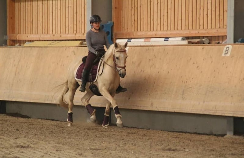 Perlita est un magnifique hongre Lusitan Puro Sangue de la ligne Veiga (sans papiers), né le 12 septembre 2009 et en ma possession depuis 2011. C’est un trésor très spécial : sensible, apprenant, travailleur et délicat – un cheval qui établit une véritable relation de partenariat avec son cavalier. Il est dressé jusqu’à la classe L (sans travers, ni changements de galop) et montre un potentiel important pour progresser. Il adore particulièrement les épaules en dedans, qu’il exécute avec enthousiasme et légèreté. Perlita est très finement monté et réagit avec sensibilité aux aides, ce qui en fait un partenaire idéal pour des cavaliers confirmés. En plus du travail classique, il connaît de nombreuses formes de travail à pied, aussi bien en liberté qu’au caveçon, et apprécie les longues promenades. Il aime aller en extérieur, avec du tempérament. Il possède beaucoup d’énergie, ce qui signifie qu’il n’est pas adapté à des cavaliers débutants. Avec une taille au garrot de 1,56 m et son magnifique pelage palomino, il ne passe pas inaperçu, tout en étant un compagnon très agréable au manège. Il nécessite une stalle la nuit et une sortie quotidienne en groupe, où il se montre amical et dominant. Perlita est un compagnon très affectueux et vif, qui apporte beaucoup de joie à son cavalier. Dans son box actuel, il a développé une légère toux en octobre, qui est en cours de traitement. En hiver, il porte une couverture et ne supporte pas les courants d’air. En résumé : Perlita n’est pas un cheval pour débutants, mais pour des cavaliers confirmés, c’est le meilleur – un partenaire fidèle, doté d’un cœur, d’un esprit et d’un potentiel immense pour l’avenir. Il sera vendu uniquement à une personne privée, afin qu’il puisse trouver la meilleure personne de référence et de monte pour lui.