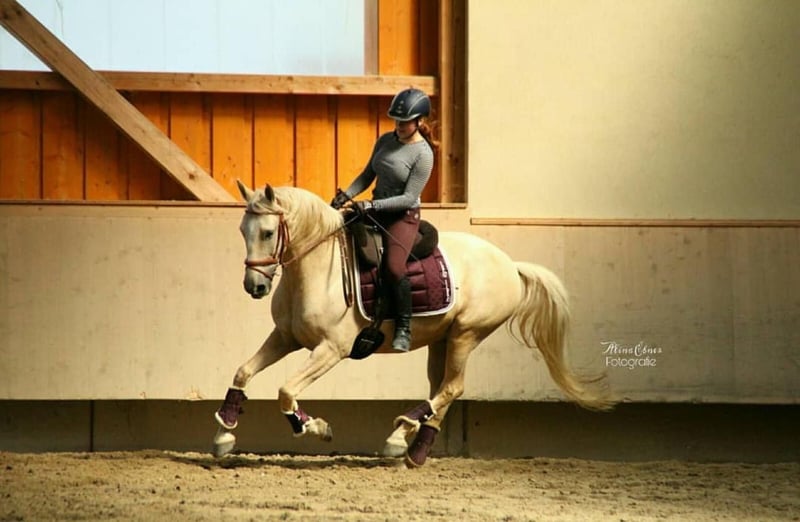Perlita to przepiękny ogier półkrwi lusitana z linii Veiga (bez rodowodu), urodzony 12.09.2009 roku, od 2011 roku w moim posiadaniu. To prawdziwy skarb: wrażliwy, chętny do nauki, pracowity i delikatny – koń, który nawiązuje prawdziwą partnerstwo z człowiekiem. Jest wytrenowany do klasy L (bez traversów i zmian galopu) i pokazuje duży potencjał na przyszłość. Szczególnie uwielbia prace na boki, które wykonuje z dużą radością i lekkością. Perlita jest bardzo dobrze jeżdżony i reaguje delikatnie na pomoce, co czyni go doskonałym partnerem dla zaawansowanych jeźdźców. Oprócz pracy klasycznej zna wiele technik pracy na ziemi, zarówno w wolnej formie, jak i na lonży, oraz chętnie spaceruje na wycieczkach terenowych. Chętnie chodzi w teren i ma temperament. Ma „kopa”, więc nie jest końkiem dla początkujących. Z wysokością w kłębie 156 cm i pięknym palomino, jest nie tylko efektowny, ale także bardzo przyjemny w obsłudze. Noc spędza w boksie, a codzienny ruch na wybiegu w grupie jest dla niego ważny – okazuje się być przyjaznym, niższym rangą towarzyszem. Perlita to bardzo kochany i temperamentny koń, który daje swojemu człowiekowi wiele radości. W obecnym stajni w październiku rozwinął lekki kaszel, który jest obecnie leczony. Zimą jest końcem w derce i nie toleruje przeciągów. Podsumowując: Perlita nie jest końkiem dla początkujących, ale dla zaawansowanych jeźdźców jest najlepszy – wierny partner z sercem, rozumem i dużym potencjałem na przyszłość. Sprzedawany wyłącznie do prywatnej osoby, aby mógł znaleźć najlepszą opiekunkę i jeźdźca, z którym będzie mógł kontynuować swoją drogę.