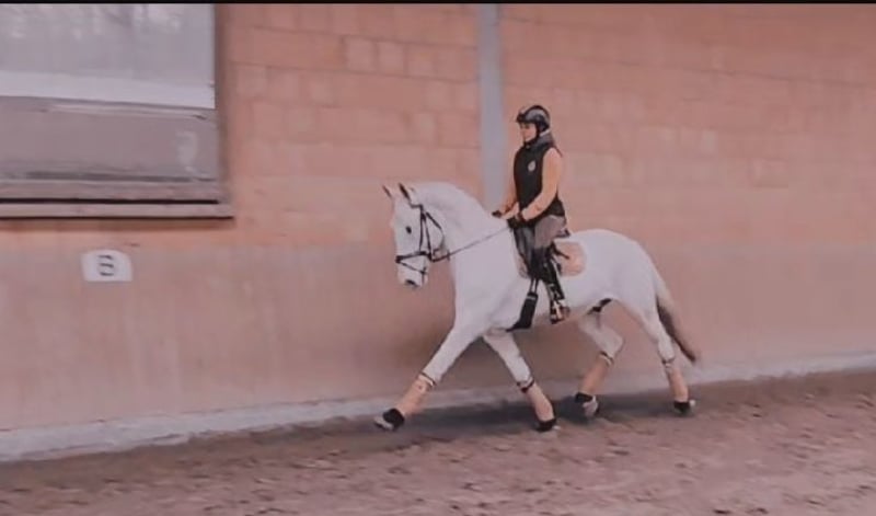 On behalf of a private owner, we are selling an elegant Lusitano cross gelding, born in 2009. Standing at 16.1 hh, he is the perfect size for ambitious dressage riders who value refined riding and quality movement within an affordable budget. Price range: €15,000 – €25,000 A fair price will surely be found that makes both parties happy. Price is secondary; I am not concerned with the last few euros, as this is also a matter of the heart! I am open to offers and appreciate honest communication. Interested parties can call 015120780566 – emails will not be answered. As long as the ad is visible, the horse is available. **Riding:** He knows all Grand Prix movements. He is light and very responsive to the aids, with excellent leg support. He bends like a rubber ball and is easy to ride. He enjoys jumping and performs simple changes effortlessly. Travers, pirouettes, and half-passes are very easy for him. His controlled, strong, and natural trot extension is especially notable. He has a lovely, comfortable GO, with lots of knee action and a very attractive, expressive movement. He is comfortable riding alone or in a group in the terrain. His sensitive nature and pronounced talent for dressage make him stand out. No spurs or whip are needed for riding! Recently, we transitioned him from a snaffle bit to a bridle and even to bitless, where we are refining his training. His elastic movements and pleasant character make him a reliable partner for the ambitious rider seeking a harmonious partnership. He also has show experience and is definitely bomb-proof. An exceptional leisure horse of high quality. Experienced children can handle him easily. He is barefoot. This elegant dressage gelding is a trustworthy partner for daily training, providing long-lasting joy and serving as a true teacher. Lusitanos are known for their high work ethic and deep bond with their rider. Pure riding pleasure and a heart of gold. Recently, he was even ridden effortlessly by a 10-year-old girl during a lesson. **Social behavior:** He is used to daily turnout and receives hay 24/7. He is compatible and uncomplicated with other horses, including mares. **Groundwork:** He is currently being trained in liberty dressage. He can walk freely, perform walk-trot, and collected canter. He piaffes freely at the hand without any aids. Spanish walk, trot, and passage. My 3-year-old son can lead him alone without any issues—such a well-behaved horse! You don’t even need to tie him up when grooming… He offers his hooves on cue, just by pointing and snapping. **Other notes:** He is reserved with strangers but never difficult. He may need some time to settle in fully. Ten years ago, he bit his tongue once but can live with this; it was only noticed during dental treatment. He has a passport, is chipped, and vaccinated. Recently, he was re-shod, and his teeth were done in January 2026. No known health issues. He grew up in Spain but has noble Portuguese blood (Lusitano). He is currently under full saddle and bridle, being actively trained, and shows enormous willingness to perform and learn. He does not have to be sold; this is not a distressed sale. No haken – a rare opportunity to acquire a fully rideable Grand Prix horse for private persons at an affordable price—an exceptional teaching horse, one in a million. A purchase via video is possible. A horse transport service can be arranged.