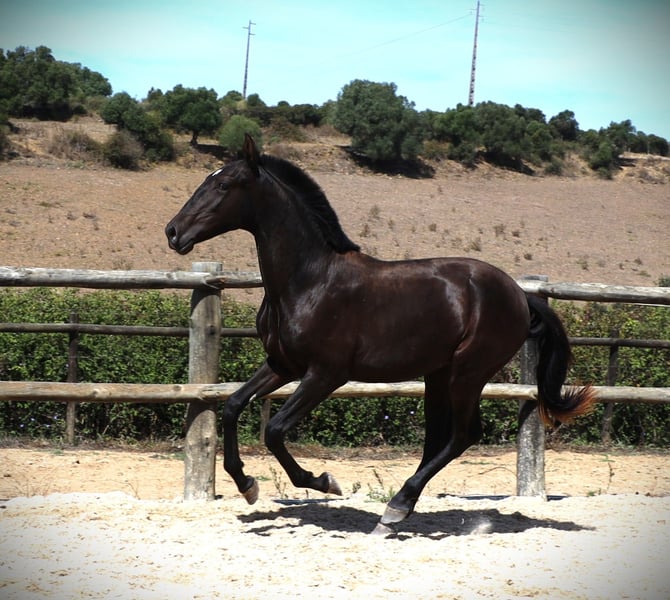 Tokio SR is currently growing up in a small group. He could stay in Portugal for further breeding and could also be broken in here later. He is a descendant of famous horses like Nordeste (Silveiras), Peralta (Vasco Freire, ), will be big enough for big riders. We are also happy to help with transportation.