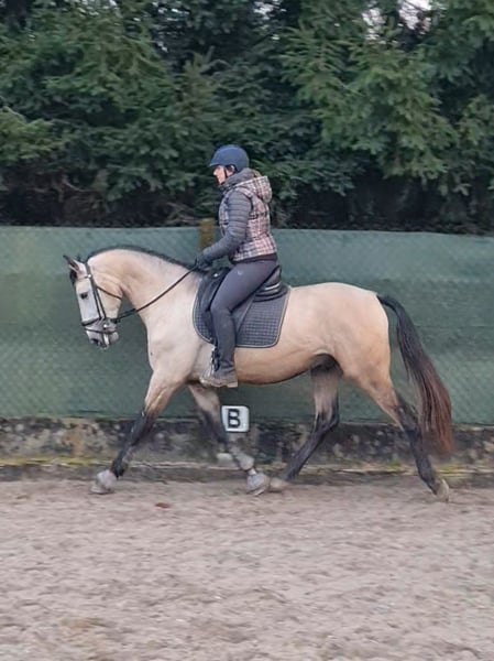 💫 Race : Pur-sang Lusitanien 🇵🇹 💫 Sexe : hongre 💫 Année de naissance : 2022 elevage Français Gari Zoher. A vecu au pré puis debourré en ete 2025 💫 Taille : 1,57 m (susceptible d’atteindre 1,60–1,62 m) 💫 Papiers : Oui origines Piton ~ Novilheiro / Universo / Príncipe JHC Il réunit toutes les qualités pour une magnifique relation partenaire–cavalier : 💫 Monte dans le camion et le van calmement, très facile à charger (testé même sur une aire d’autoroute!) 💫 Sûr et détendu en extérieur il part seul et franchis aisément les troncs au pas ou autres obstacles sont se poser de questions. 💫 Fin et agréable sous la selle. Quand il est monté, il reste calme ; les transitions sont fluides, le contact est stable et le cadre constant. Il possede une belle cadence. 💫 Son galop est exceptionnel : équilibré et régulier 💫 Trot et pas bien articulés et ample 💫 Honnête, curieux, avec beaucoup de présence et une grande confiance, où que vous l’emmeniez 💫 Idéal pour Working Equitation, Dressage, et potentiel PSG++ 💫 N'a pas de comportement agaçant. Il est respectueux en main et en longe il est attentif et concentré dans le travail. 💫 visite check a 2 ans. Visite veto lors de l'achat faite par l'acheteur. ▶️ Budget conséquent en vu du potentiel pour l'équitation sportive et de compétition