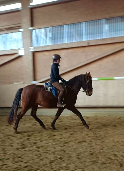 Eckdaten: • Name: Othello • Rasse: Lusitano-Mix • Alter: 4 Jahre • Geschlecht: Wallach • Standort: Tuttlingen Beschreibung: Der schicke Wallach in seltener Optik ist der ideale Partner für Reiter, die ein zukünftiges Verlasspferd suchen und die feine, iberische Art zu schätzen wissen und damit umgehen können. Aufgrund seines jungen Alters und einer tendenziell dominanten Ader sucht Othello einen souveränen Pferdemenschen, der ihm Sicherheit und Struktur gibt. Er braucht eine konsequente, aber liebevolle Führung, da er in unsicheren Händen sonst zu Abwehrverhalten neigen kann. In der Vergangenheit wurde Othello im Schulbetrieb eingesetzt. Dabei hat sich gezeigt, dass er eine andere Orientierung in Form von individueller Förderung bevorzugt. Ausbildungsstand & Charakter: Aktuell befindet er sich in Beritt zur weiterer Ausbildung und entwickelt sich positiv. Er zeigt sich verschmust, lernwillig und kooperativ bei der Arbeit, sodass er die Grundgangarten inzwischen gut beherrscht. Haltung: Othello ist aufgrund Ausbruchgefahr keinesfalls für Einzelhaltung geeignet. Er kann sowohl im Offenstall/Herdenverband als auch in Boxenhaltung leben, sofern soziale Kontakte und ausreichend Auslauf gewährleistet sind. Fazit: Ein charismatischer, vielversprechender Freizeitpartner für die akademische Arbeit, Working Equitation oder das gehobene Freizeitreiten. Kennenlernen: Für einen persönlichen Kennenlern-Termin berechnen wir eine Pauschale von 40€. Wir nehmen uns ausgiebig Zeit und möchten Othello vor Reittourismus schützen, um ein wirklich passendes Zuhause für ihn zu finden. Selbstverständlich wird der Betrag bei einem Kauf wieder entsprechend verrechnet. Ernsthaftes Interesse geweckt? Dann freuen wir uns auf Ihre Nachricht, um weitere Informationen auszutauschen oder einen persönlichen Kennenlern-Termin auszumachen.