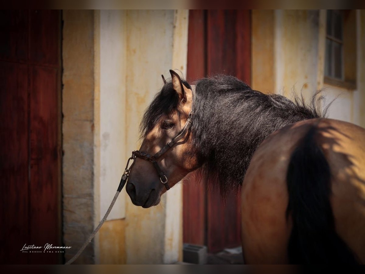 Lusitano in special color – 1.70 m – A real eye-catcher with a gentle nature Features: - Breed: Lusitano - Gender: Gelding - Year of Birth: 2022 - Color: Buckskin - Height: 170 cm This extraordinary three-year-old Lusitano gelding captivates not only with his rare special color (Buckskin) but especially with his impressive height of 1.70 m, making him a true standout – whether in the arena, on the trails, or perhaps even at a few competitions in the future. He displays a very calm, people-oriented, and balanced character. Currently, he is being calmly introduced to lunging – with plenty of time and patience for healthy development. With his charming nature and appearance, he has everything it takes to become a loyal leisure partner in the future – whether for relaxed rides, working equitation, or perhaps as a highlight at a small competition or shows. An exceptional horse for those seeking something special. I can gladly provide more pictures and videos upon request.