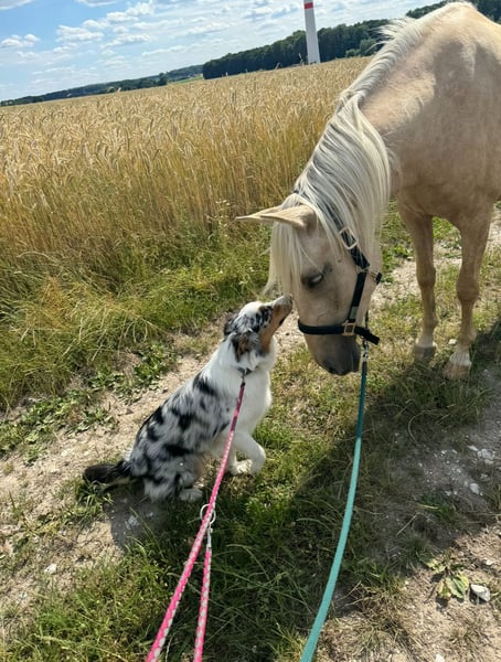 Schweren Herzens suche ich für meinen 4 jährigen Wallach ein 5 Sterne zuhause. Er ist ein sensibel, gut erzogen & ein Pferd mit komplett bekannter Vorgeschichte. Keine Katze im Sack. Ich kenne ihn seit er 7 Wochen alt ist und habe ihn selbst mit meiner Trainerin zusammen eingeritten. Er ist ein „Ein-Frau-Pferd“, aber ich kann ihn mir sehr gut als Familienpferd vorstellen. Er liebt Kinder und ist extrem vorsichtig mit ihnen & hat viel Geduld. Hunde kennt er auch. Er zeigt sich sehr lernwillig und zuverlässig. Gewinnt man sein Vertrauen, geht er für seinen Menschen durchs Feuer. Bisher ist er in allen Gangarten, bei jedem Wetter geritten. Sowohl in Halle, auf dem Platz und im Gelände. Im Urlaub war er mit und hat sich ungewöhnlich cool gezeigt. Er hat mich durch tiefe Wasserbäche getragen und hat sehr gutes Grundvertrauen, aber braucht einen Moment, um sich auf seinen Menschen einzustellen. Als Anfängerpferd würde ich ihn nicht beschreiben, da er ein Spanier ist und gefordert werden möchte. Nur im Kreis reiten ist kein Problem, aber auf Dauer zu langweilig. Daher suche ich jemanden, der durchsetzungsfähig ist und seinem Roten Faden treu bleibt. Denn das ist was Sol an Sicherheit braucht. Wer ihm diese liebevolle Führung bieten kann, hat einen besten Freund fürs Leben. Sol hat ein sehr gutes Sozialverhalten und kann sowohl mit Stuten, als auch Wallachen stehen. Allerdings keine Boxenhaltung, da ich mir das nicht als Leben für ihn wünsche. Nachts Box und tagsüber komplett raus, wäre aber ok. Er wird nie kopflos und ist sehr treu. Vollständiger Impfstatus ist vorhanden (Tetanus), ist regelmäßig Entwurmt, hat 1x im Jahr Zähne gemacht bekommen, alle 7-8 Wochen Hufschmied (Barhuf) und alle 8 Wochen Physio/Osteopathie. Ca 1,52m groß. Zusätzlich hat Sol das Champagner Gen- weshalb er eine außergewöhnliche Farbe hat. Grund des Verkaufs ist Aufgabe des Reitsportes. Es liegt bestimmt nicht an ihm. Bei Interesse gerne mehr Informationen, per DM oder Telefonat. Er kommt nur in ein 5 Sterne zuhause. Platz vor Preis. Er steht aktuell in Melle