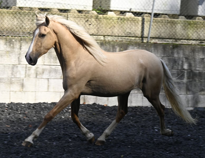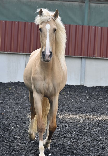 Viente ist ein verschmuster junger Cruzado/ Lusitano Mix Wallach in der Sonderfarbe Palomino, mit Blässe und vier weissen Beinen. Der hübsche blonde Mann ist am 01.07.2021 geboren und 158cm gross. Viente ist in allen drei GGA geritten, im Gelände und auf dem Platz oder Halle. Er ist sehr artig und kann auch von Kindern und Anfängern geritten werden. Im Gelände zeigt er sich unerschrocken und Verkehrssicher. Er ist sehr neugierig, reagiert fein auf die Hilfen und hat ein ausgeglichenes Temperament. Er ist Schmiede und verladefromm. Viente ist regelmässig entwurmt und geimpft. Er ist barhuf und wurde im Juli 2024 kastriert. Er kennt den Offenstall wie auch die Boxen haltung. Viente ist ein sehr unkomplizierter, freundlicher und aufgeschlossener Wallach.