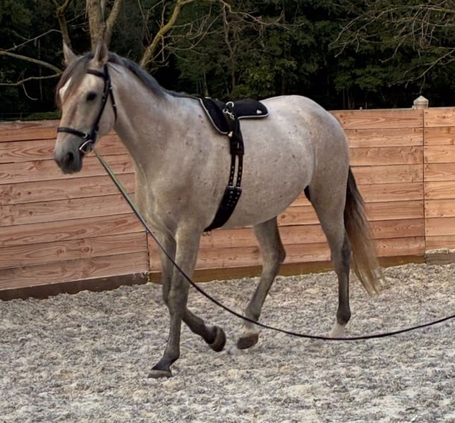 Beautiful 5-year-old Lusitano, superb character, intelligent, well-behaved, and courageous. Very good pedigree with 3 good gaits. Up to date with farrier, dentist, and vaccinations. Broken to saddle and beginning light dressage.