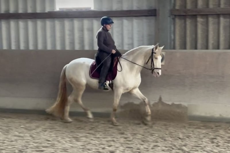 A 5-year-old Perlino with Dun coat seeking a new home. I am only offering him up because I cannot keep him with the mares due to his breeding activity. He has good basic gaits, including a very beautiful, large canter, and is easy to ride both indoors and in the field, making riding a real pleasure. Extremely affectionate and well-trained, he is an absolute dream horse. He has been solidly ridden but has not yet been extensively worked and needs further training.