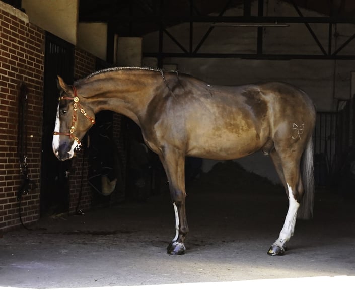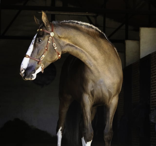✨ Außergewöhnliches Palomino-Talent – Präsenz, Kraft und Reitbarkeit ✨ Ein wirklich auffälliger Schokoladen-Palomino-Geländesohn, fast 5 Jahre alt, mit beeindruckender Größe von ca. 1,73 m, der Größe, Ausdruck und außergewöhnliche natürliche Fähigkeiten vereint. Dieses Pferd fällt sofort durch seine beeindruckenden Bewegungen auf, mit einer natürlichen aufwärtsgerichteten Gangart und einem hervorragend ausbalancierten, kraftvollen Galopp, der sowohl Qualität als auch Reitbarkeit bietet. Er zeigt exzellente Koordination, Elastizität und Präsenz. Neben seinen physischen Qualitäten ist sein Charakter einfach außergewöhnlich. Extrem freundlich, willig und zuverlässig ist er ein Pferd, das Vertrauen aufbaut und eine echte Partnerschaft mit seinem Reiter schafft. Für absolut jeden Reitertyp leicht zu handeln. Er ist bereits gut im Gelände erfahren und wurde in allen möglichen Umgebungen geritten: – Berge – Waldwege – Offene Landschaften – Strandritte Nichts bringt ihn aus der Ruhe – er bleibt ruhig, konzentriert und kooperativ, was ihn zu einem vertrauenswürdigen Partner in jeder Situation macht. Seine Einzigartigkeit unterstreicht er durch außergewöhnliche Abzeichen auf seinem Körper, die seine bereits beeindruckende Präsenz noch verstärken. ✨ Wichtige Highlights: 🐴 Palomino-Schokolade mit außergewöhnlicher Präsenz 🐴 Hervorragend ausbalancierter Galopp 🐴 Tremendous mover mit natürlichem aufwärtsgerichtetem Gleichgewicht 🐴 Beginn des spanischen Schritts 🐴 Sitz- und Seitengänge im Anfangsstadium (super intelligent) 🐴 Außergewöhnlich freundliches Wesen 🐴 Für jeden Reitertyp leicht zu handhaben 🐴 Erfahrung in allen Umgebungen (Berge, Wald, Strand) 🐴 Sicher und zuverlässig in jeder Situation 🐴 Einzigartige Abzeichen am ganzen Körper Eine seltene Kombination aus Größe, Bewegung, Intelligenz, Temperament und Schönheit – ein Pferd mit großem Potenzial für die Zukunft.