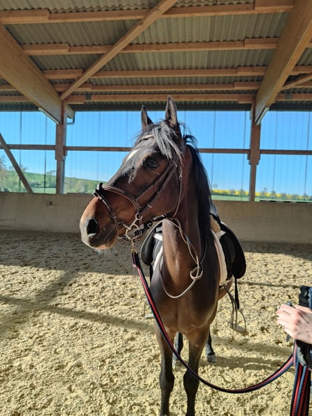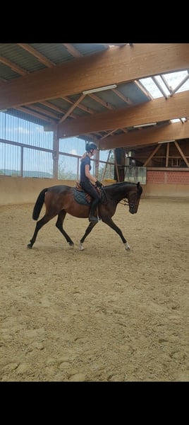 Este joven lusitano impresiona no solo por su elegante apariencia, sino también por su carácter maravilloso. Con sus actuales 1,54 m, todavía está en pleno crecimiento y se desarrolla de manera excelente; día a día muestra más expresividad, fuerza y presencia. Destaca por sus tres aires básicos, expresivos y libres de irregularidades, además de poseer una mente clara y una impresionante fortaleza nerviosa. A pesar de su juventud, es un caballo agradablemente cálido, nunca nervioso ni sobreexcitado, y simplemente disfruta del trabajo conjunto. En cuanto a su cabeza, todavía puede madurar un poco más y adquirir rutina, pero eso precisamente lo convierte en un compañero con gran potencial de desarrollo. Su estructura corporal compacta y armoniosa, junto con su capacidad natural de recogimiento, lo convierten en el candidato ideal para la doma clásica o también para la Working Equitation. Asimismo, demuestra gran talento y entusiasmo por el trabajo en libertad y las lecciones de circo: le encanta interactuar con su jinete, llevar cosas y descubrir nuevas tareas. En el establo, es el payaso con corazón, juguetón, cercano a las personas y siempre amable. Está bien cuidado, ha sido revisado regularmente por el herrador, desparasitad y, por supuesto, vacunado. Una revisión clínica actual puede realizarse en caso de sospecha de sobreexcitación. Este lusitano es un auténtico caballo de corazón, con encanto, movimiento y personalidad. Un diamante en bruto que se convertirá en un verdadero caballo de ensueño para la equitación. 💫 ¿Te ha gustado Spirit? Entonces, ¡me encantaría recibir tu llamada o mensaje! Para conocer mejor a tu caballo ideal, puedes tomarte tu tiempo y alojarte en nuestra hermosa región del Edersee, combinando así tu viaje con unas vacaciones cortas. Por conocer y montar al caballo, se cobran 50 € por día y por caballo, los cuales se deducirán en caso de decidirte por la compra. ¿No encuentras en mi anuncio el caballo perfecto para ti? ¡Entonces, yo te lo buscaré! Más información en www.deinspanischespferd.de. ¡Estoy deseando conocerte!