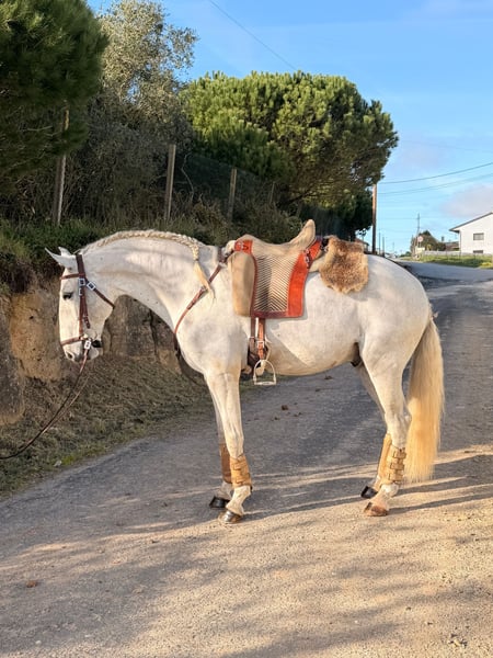 ✨QUERUBIM✨ Sympathischer Lusitano-Wallach für Freizeit und Dressur mit ehrlichem Charakter QUERUBIM Merkmale: - Rasse: Lusitano - Geschlecht: Wallach - Geburtsjahr: 2020 - Farbe: Schimmel - Stockmaß: 1,54m ⸻ Mit QUERUBIM steht ein sehr sympathischer Lusitano-Wallach zum Verkauf, der sich durch seinen freundlichen Charakter, seine angenehme Rittigkeit und seine solide Grundausbildung auszeichnet. Ein ehrliches Pferd, das sich besonders gut für Freizeitreiter oder Reiter mit dem Wunsch nach einem unkomplizierten Partner eignet. ⸻ 🧬 Abstammung: ✨ Vater: URCO • gekört mit 67,5 Punkten • aus der bekannten Veiga-Linie, die für Rittigkeit, Charakter und Arbeitswillen geschätzt wird ✨ Mutter: MANZANA • gekört mit 77,51 Punkten • eine außergewöhnlich hoch bewertete Lusitano-Stute mit viel Qualität ➡️ Eine interessante Kombination aus Lusitano-Genetik und sehr guter Mutterlinie. ⸻ 🎓 Ausbildungsstand: QUERUBIM wird seit etwa einem Jahr unter dem Sattel geritten und kennt bereits: • Schritt, Trab und Galopp unter dem Reiter • grundlegende Arbeit auf dem Reitplatz • ruhiges und kooperatives Verhalten beim Reiten ➡️Er zeigt sich dabei ehrlich, brav und angenehm zu reiten. ⸻ 🐎 Typ & Bewegung: • kompakter, harmonischer Lusitano-Typ • angenehme, gut zu sitzende Bewegungen • gute natürliche Balance • solide Grundlage für die weitere Ausbildung ➡️Ein Pferd, das sich besonders für entspanntes Reiten und Freizeit eignet. ⸻ 🧠 Charakter: • freundlich und menschenbezogen • ehrlich im Umgang • ruhig und unkompliziert • angenehmes Temperament ➡️Ein sehr netter Lusitano-Wallach, der seinem Reiter Vertrauen schenkt und gerne mitarbeitet. ⸻ 🩺 Gesundheit: • Röntgenbilder vorhanden • Befund an den Sprunggelenken vorhanden ➡️Aufgrund dieses Befundes wird QUERUBIM zu einem sehr attraktiven Preis angeboten, ist jedoch problemlos reitbar. ⸻ 🎯 Für wen ist QUERUBIM geeignet? • Freizeitreiter • Reiter, die einen ehrlichen und unkomplizierten Lusitano suchen • Menschen, die ein braves Pferd für entspanntes Reiten möchten ⸻ ⭐ Fazit: QUERUBIM überzeugt durch: ✔️ freundlichen Charakter ✔️ solide Grundausbildung ✔️ ehrliche Rittigkeit ✔️ interessante Abstammung ✔️ sehr attraktives Preis-Leistungs-Verhältnis ➡️Ein sympathischer Lusitano-Wallach für Reiter, die einen ehrlichen Partner für entspannte Ritte und Freizeit suchen. ⸻ 📞 Kontakt & Besichtigung QUERUBIM kann nach Vereinbarung besichtigt und probegeritten werden. Ich freue mich auf ernsthafte Anfragen und nehme mir gerne Zeit für ein persönliches Gespräch.