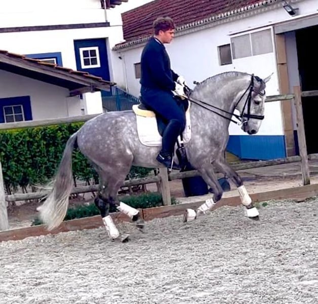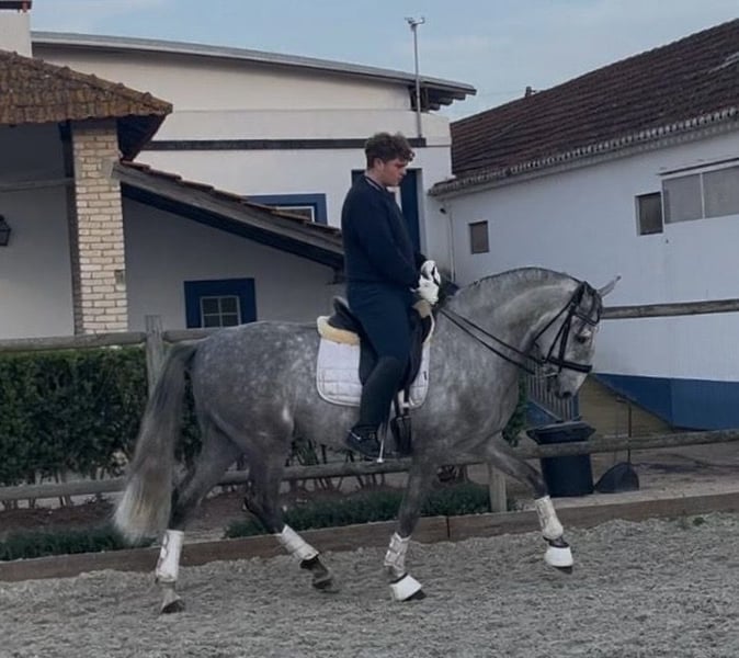 Beautiful purebred Lusitano gelding with Blue Book and Pirofree, born in 2018 and standing 1.61m at the withers. This lovely grey is a kind, honest and very reliable horse, suitable for riders looking for a safe and enjoyable partner. He is extremely easy and confident outside, has been to the Golegã Horse Fair, and behaves very well in new environments. He also jumps a little, making him a versatile and fun horse for different types of riding. On the flat he is correctly trained and works: • Leg yields • Half passes • Simple changes • Medium trot He is a super horse for beginners or for someone looking for a safe trail companion that can also enjoy schooling in the arena. 📍 Located in Portugal 🐴 Can be seen and tried without commitment 📩 More information, photos and videos available by private message A genuine Lusitano with a great temperament and lovely movement — ready to give someone lots of unforgettable moments both in and out of the arena.