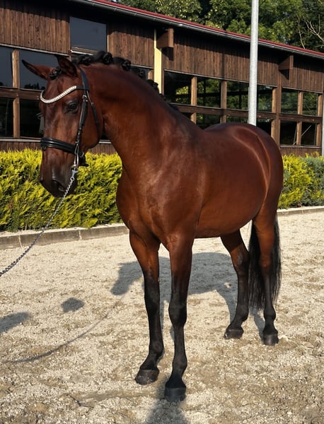 Namórico is an 8-year-old gelding, suitable for amateurs, who guides you and helps you learn all exercises up to Grand Prix level. He is a horse with a very good character, a very good work ethic, and is very friendly towards other horses and people. He is safe and not spooky. He loves to go for walks in the field and spend time with his rider. He has a lot of talent for exercises and experience in dressage at the junior level (M-level) and is advanced in working equitation. Good X-rays and perfect health; he has never had an injury.