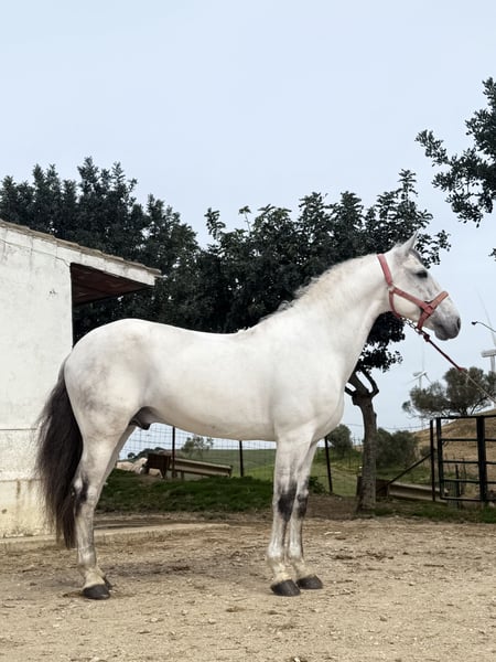 JER, Approved Lusitano stallion born 2014 and ap. 165 cm. JER is a well educated horse with amazing movements and good rideability. He gives a great feeling to the rider with his power and willingness to work. He's very elastic and has really good activity in his hind legs. JER has easy for the collected exercises, he does really nice passage, piaffe and canter pirouettes. Also smooth half passes and good flying changes. For someone with breeding interest, JER has a high breeding value. Videos available with different riders. JER is easy to handle and calm around other horses, including mares. Located in southern Spain and we help with all the steps in the buying process. Read more about us at www.cthorsesales.com Contact: info@cthorsesales.com