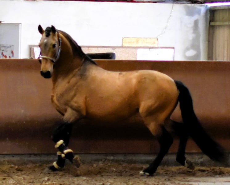 Lusitano, stallion, son of Escorial born in 2013 at Luis Bastos breed farm, scored 71.5 , Isabelle coat color.- 1.66 m, Fantastic breeding stallion, ideal for bringing in good blood, 3 excellent gaits and color. Red factor E/e Agouti A/A Cream N/Cr Pearl N/N Silver N/N Dun nd1/nd2 Champagne N/N Gray ABSENT His semen freezes very well - spermogram available on request - Semen available worldwide - he has 24 offspring registered in the Portuguese studbook and as many in Luso-Warmblood crossbreeding in France - Due to the quality of his gaits and conformation, Imperador has been approved for breeding in CDF (Cheval de Dressage Francais - French Luso-Warmblood). Lusitanien, étalon, fils d'Escorial né en 2013, à l'élevage Luis Bastos - ponctué 71.5 , de robe Isabelle.- 1,66 m, Fantastique étalon d’élevage, idéal pour apporter du bon sang, 3 excellentes allures et de la couleur Red factor E/e Agouti A/A Cream N/Cr Pearl N/N Silver N/N Dun nd1/nd2 Champagne N/N Gray ABSENT Sa semence congèle très bien - spermogramme sur demande - semence disponible pour le monde entier - il a 24 produits inscrits au studbook portugais et autant en croisement luso-warmblood en France - De par la quaité de ses allures et sa conformation, Imperador a été approuvé pour produire en CDF (Cheval de Dressage Francais - French Luso-warmblood)