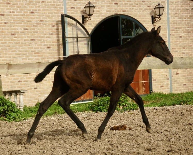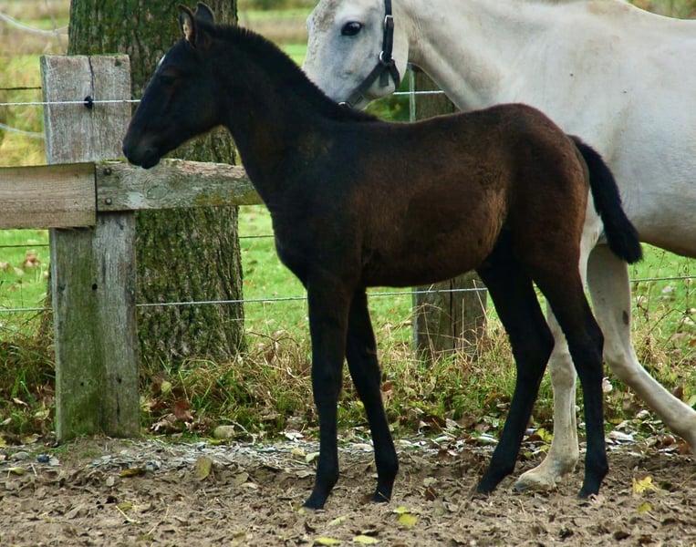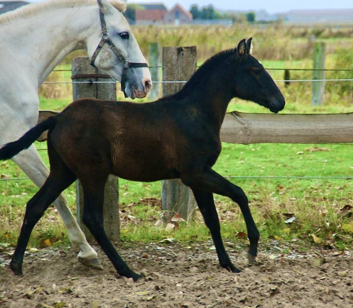 Lusitano foal with an excellent temperament! His mother is a full-blooded Lusitano mare, approved for breeding, and comes from prestigious and old bloodlines (Novilheiro, Neptuno, etc.). His father is a full-blooded Lusitano stallion, but not yet approved for breeding. Therefore, the foal will receive Lusitano crossbreed papers. He is very well handled and dewormed. Please feel free to contact us for more information.