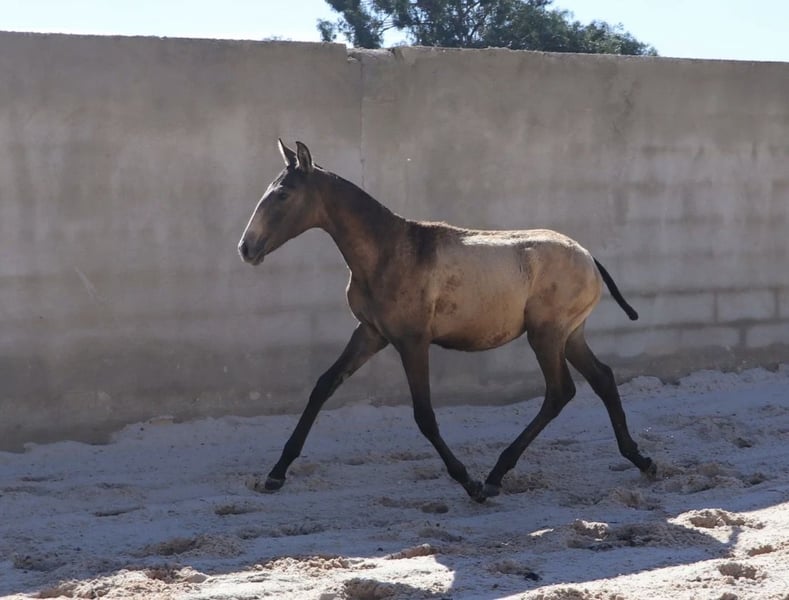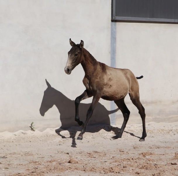 Potente potro destet con excelente pedigree Características: - Raza: Lusitano - Sexo: Macho - Año de nacimiento: 2025 - Color: Buckskin - Altura: Altura final estimada 164 cm Potente potro destet con excelente pedigree – ¡directamente del criador! Este semental Lusitano, nacido en abril de 2025, impresiona con su rara y oscura coloración buckskin y su carácter amable y sociable. Ya se muestra muy confiado y claro de mente. Su padre es un semental galardonado en múltiples ocasiones – campeón mundial y europeo en Working Equitation – conocido por su excepcional capacidad de montar, fortaleza nerviosa y su carácter honesto. Estas cualidades las transmite de manera constante a su descendencia. Aunque muchas de sus líneas son exitosas en la tauromaquia, sus descendientes destacan por su carácter equilibrado y su forma sencilla de relacionarse en el día a día. La altura futura se estima en aproximadamente 1,64 m – ideal para jinetes que buscan un caballo deportivo y sensible con excelentes cualidades. Actualmente, VARZIM está creciendo en un hermoso campo, donde puede desarrollarse en paz y recibe la mejor alimentación. En la manada, se muestra extremadamente compatible con otros caballos. Puedo enviar más fotos y videos con gusto si hay interés.