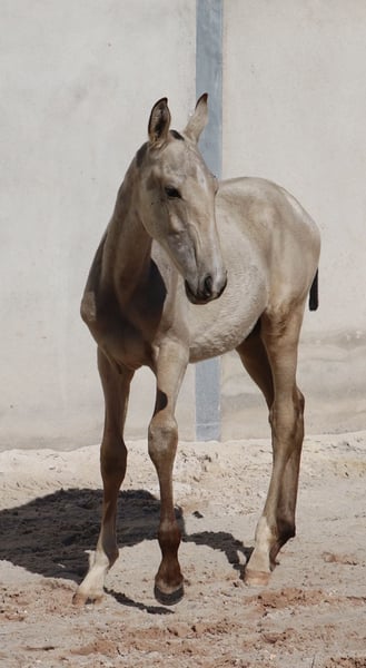 VALETE – Bright Buckskin Foal with Outstanding Lineage Features: - Breed: Lusitano - Sex: Colt - Year of Birth: 2025 - Color: Buckskin - Approximate Final Height: 16.1 hh Sire: ADÁGIO • Dam: High-licensed • Genetic tested ⸻ 🌟 Exceptional Conformation & Genetics VALETE is a well-built Buckskin colt born in 2025, with confirmed genetic color markers. His shiny coat and harmonious proportions already make him a striking eye-catcher. - Buckskin – genetically tested - Strong build with excellent limbs - Balanced, correct conformation ⸻ 🧬 Premium Pedigree Sire: ADÁGIO – successful internationally in Working Equitation and Bullfighting, with a clear mind, excellent rideability, and remarkable nerves. Dam: correctly conformed, high-licensed, especially calm and willing to perform. This pairing guarantees a clear-headed nature, ideal conditions for sport and leisure, and a high talent for Working Equitation. ⸻ 🧠 Character & Upbringing VALETE already shows himself as a particularly calm, curious, and well-mannered young stallion. - Easy to handle and approach - Displays a confident, unshakable character - Lives naturally in a herd on the pasture - Familiar with various ground surfaces, growing up robust and healthy ⸻ 🏅 Future Potential With his pedigree, conformation, and temperament, VALETE has everything needed to become a high-performance sport partner or a solid, resilient leisure horse in the future. ⸻ 📩 Contact I am happy to send additional photos and videos or answer any questions. VALETE is available for reservation immediately.