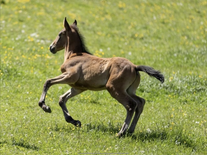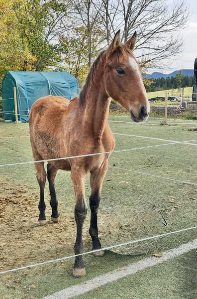 Zu Verkauf steht ein wunderschönes acht Monate altes Lusitano-Hengst-Fohlen. Er ist noch roh, lernt derzeit jedoch das Fohlen-ABC kennen. Er ist entwurmt und gechippt. Im Sommer hat er ein goldfarbenes Fell mit einem Aalstrich und 4 gleichmäßig schwarze Beine. Schon jetzt bewegt er sich sehr schick und leichtfüßig.