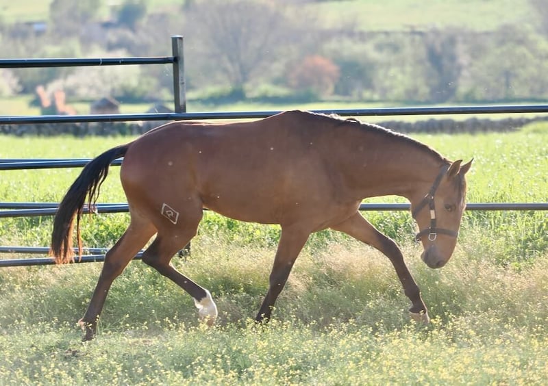 Presentamos este prometedor semental lusitano nacido en 2024, con una alzada actual de 160 cm, una medida muy interesante que combina funcionalidad, equilibrio y proyección deportiva. A su corta edad aún no ha sido montado, algo lógico y coherente con su proceso de crecimiento, lo que permite que se esté desarrollando física y mentalmente de forma natural, sentando unas bases sólidas para su futura formación. Destaca especialmente por su excelente carácter. Es un potro noble, atento y con una actitud colaboradora, cualidades fundamentales cuando pensamos en un proyecto deportivo a medio y largo plazo. Esa estabilidad mental, unida a su predisposición, facilita enormemente el inicio del trabajo bajo la silla cuando llegue el momento adecuado. En cuanto a sus movimientos, muestra un paso amplio, claro y bien marcado, con buena oscilación y naturalidad, así como un galope equilibrado y con cadencia, dos aires muy valorados en la doma clásica. Su mecánica sugiere capacidad para desarrollar reunión y expresividad con el entrenamiento correcto. Su genética refuerza aún más su interés: es hijo de Poker da Lagoalva y nieto de Craque das Figueiras, líneas reconocidas por transmitir funcionalidad, calidad de movimientos y aptitud para la alta competición. Estamos ante un joven semental con excelentes mimbres para convertirse en un futuro caballo de doma, así como en una interesante opción para la reproducción dentro del programa adecuado.