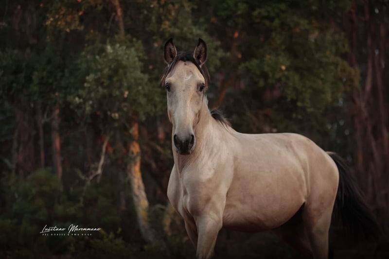 Elegant Lusitano young star in a gold coat Characteristics: - Breed: Lusitano - Sex: Stallion - Year of birth: 2023 - Color: dun - Height: 161 cm estimated This young stallion impresses with his elegant appearance and his impressive potential, which he already has as a 1-year-old. He is ideally suited for ambitious riders who are looking for a loyal partner for dressage sport. His sire HERDEIRO DA BROA is licensed with 72 points and his dam with 74.5 points, so I can also see him being used for breeding. His sire can be seen in the last 3 pictures. He is not only golden on the outside, his character is also made of gold. At the moment he lives freely on the campo according to his age and enjoys the time with his buddies. It goes without saying that he is extremely friendly. I can send you more pictures and videos if you are interested.