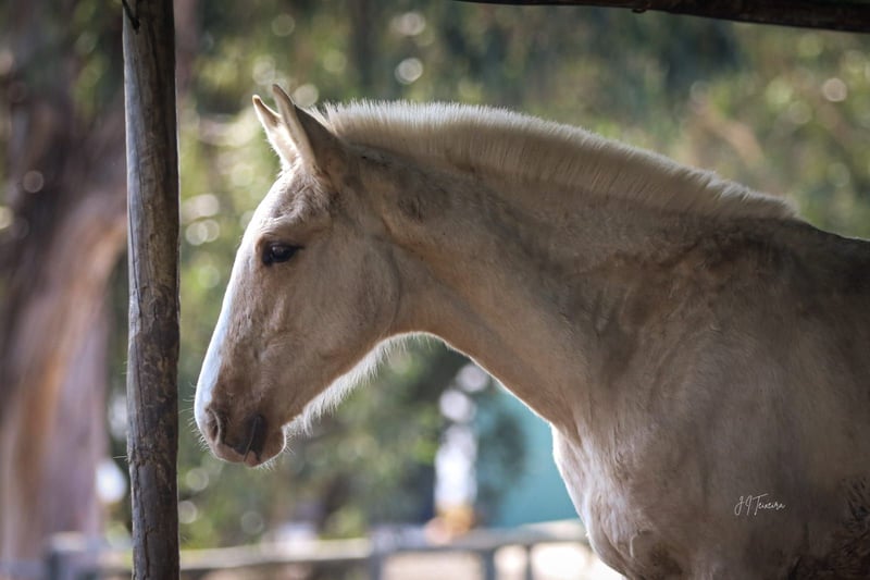 Outstanding stallion with a unique look Characteristics: - Breed: Lusitano - Sex: Stallion - Year of birth: 2024 - Color: Palomino - Height: Final height estimated 165 cm We are offering an impressive Lusitano stallion for sale that was born in 2024. This young Palomino not only impresses with his extraordinary beauty, but also with his potential as a show horse. This is also confirmed by his half-brother Fuego by Clémence Faivre. With a height of 165 cm, he presents an imposing appearance and promises a promising future in the show arena. His elegant appearance and friendly nature make him an ideal candidate for ambitious riders and breeders looking for a horse with exceptional potential. The stallion is already showing promising signs and is sure to turn heads at any event. His parents can be seen in the last pictures. I can send you more pictures and videos if you are interested.