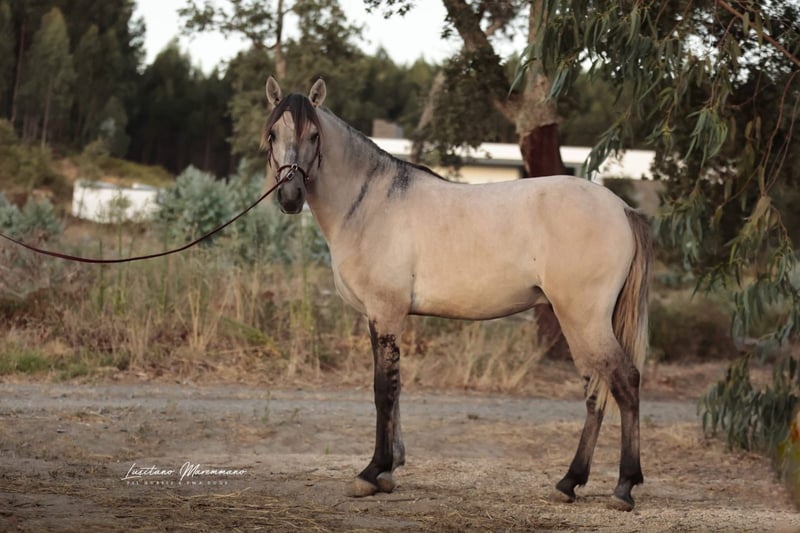 Junger Lusitano- Hengst in seltener Grau-Falb-Schimmel-Farbe, dazu fein, brav und talentiert! Merkmale: - Rasse: Lusitano - Geschlecht: Hengst - Geburtsjahr: 2022 - Farbe: Grau-Falb-Schimmel - Stockmaß: 152 cm zur Zeit Beschreibung Der dreijährige Lusitano-Hengst São Paio steht ab sofort zum Verkauf. Er überzeugt durch seine außergewöhnlich schöne Grau-Falb-Schimmel-Farbe und sein ausgesprochenes liebes und menschenbezogenes Wesen. Aktuell misst er etwa 1,52 m, wird aber mit Sicherheit noch etwas wachsen. Ausbildung São Paio befindet sich derzeit in einer altersgerechten, schonenden Ausbildung. Er ist longiert, arbeitet brav an der Longe und wurde bereits unter dem Reiter an der Longe in allen Grundgangarten gearbeitet. Er akzeptiert das Reitergewicht sehr gut und zeigt sich dabei stets aufmerksam, kooperativ und fein an den Hilfen. Seine Ausbildung wird selbstverständlich artgerecht und mit viel Geduld weitergeführt, sodass er sich weiterhin positiv entwickeln kann. Bewegung & Potenzial Auch im Freilauf zeigt São Paio eine schöne Selbsthaltung, sehr gute Grundgangarten und viel Talent für die Working Equitation. Sein Auftreten ist elegant, dabei immer ausgeglichen und angenehm im Umgang. Abstammung São Paio entstammt einem bemerkenswerten Stammbaum – sein Großvater ist kein Geringerer als der berühmte Escorial, was sich deutlich in seiner Qualität, seiner Bewegung und seinem Ausdruck widerspiegelt. Fazit Ein junger Lusitano mit viel Charme, Talent und besonderer Farbe, der seinem zukünftigen Menschen sicher sehr viel Freude bereiten wird – ob als Freizeitpartner, Working-Equitation-Pferd oder zukünftiges Reitpferd mit Potenzial. Weitere Bilder und Videos kann ich gerne bei Interesse zukommen lassen.