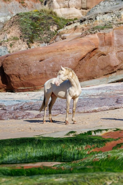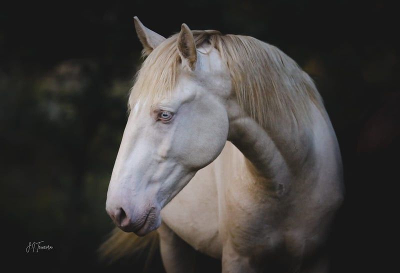Beautiful Lusitano stallion with excellent pedigree Characteristics: - Breed: Lusitano - Sex: Stallion - Year of birth: 2022 - Color: Perlino - Height: currently 152cm, final height estimated 158cm A magnificent Lusitano stallion from the year of birth 2022 is for sale. This extraordinary Perlino not only impresses with his rare and beautiful color, but also with his impressive presence and elegance. He appears like a mythical creature and is therefore a real eye-catcher that attracts everyone's attention. Samouco already shows potential for an ambitious leisure rider or for dressage and working equitation. He is very well behaved, knows the hoof trimmer, is halter trained and can be loaded perfectly. He is always friendly towards people and enjoys spending time with them. His sire Imperio II from the well-known Sociedade das Silveiras breed has given him a lot of potential (pictures of the sire attached). He is currently growing up in a wonderful kennel, where he can grow in peace and is provided with the best food. He is extremely compatible with other stallions. He can also stay in the rearing center until he is 3 years old for a fee. I can send you more pictures and videos if you are interested.