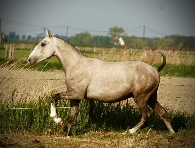 Hongre Lusitanien de 2 ans avec pedigree complet Fils du cheval olympique Fogoso TVF Sa mère est issue des lignées classiques Arsenio Cordeiro (Navalheiro) Super caractère ! Taille finale environ 1,60 m Votre partenaire idéal pour la dressage classique, l'équitation de travail ou les loisirs !