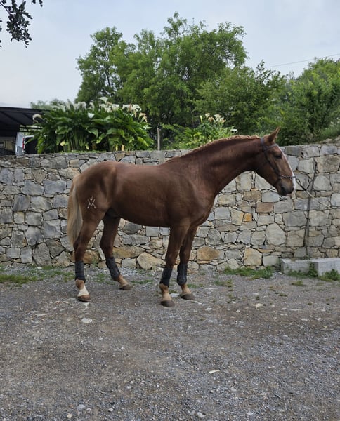 This stunning Lusitano colt will turn 3 years old in June. He is currently standing at 1.64m, with an expected mature height of approximately 1.66m. He stands out for his exceptional temperament, being extremely gentle, kind, and easy to handle, even with children. His calm nature and willingness make him a truly enjoyable horse to work with and be around. With his natural presence and balanced movement, he shows great potential for the future. We believe he will become a reliable, safe, and rewarding partner, suitable for both amateur and more experienced riders. A genuine young horse with an outstanding character and a very promising future ahead. For more information and videos, please feel free to get in touch.