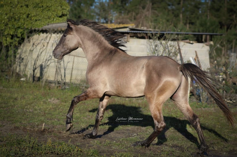 Magnificent Stallion with Beautiful Grey Coat Features: Breed: Luso-Arab (3/4 Lusitano 1/4 Arabian) Gender: Stallion Year of Birth: 2022 Color: Grullo Height: 160 cm, currently, with potential for more growth We are offering an exceptional Lusitano stallion for sale, born in 2022. This impressive young stallion captivates with his rare and fascinating Grullo coloring, making him a true eye-catcher. He presents himself with an elegant and harmonious stature. His noble appearance and friendly, approachable nature make him an ideal partner for ambitious riders and enthusiasts of this noble breed. The stallion shows a willingness to learn and talent, making him a promising candidate for various disciplines. If you are looking for a young, promising Lusitano that impresses both in appearance and personality, then this stallion might be the right horse for you. I can gladly provide additional pictures and videos upon request.