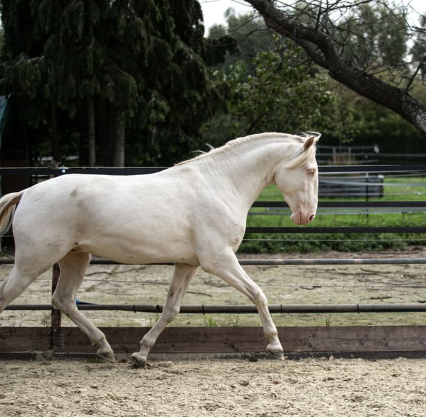 This stunning 3.5-year-old Lusitano stallion, fully registered with APSL and of excellent pedigree, is seeking a wonderful new home! Sire: 1.76 m, thoroughly licensed with distinction, Dam: 1.63 m, also from top-quality breeding. Estimated final height approximately 1.63 m (16.1 hh), with the strong build of a classic Lusitano. Temperament: Very people-oriented and affectionate, friendly and curious – social in a mixed herd, low in the ranks, and easy to handle. He is not a difficult young horse; as gentle as a gelding, and already forgiving if the handler makes a mistake. His temperament is perfectly balanced; he can be actively engaged but remains approachable. If no work is required, he is content to amble along peacefully. He is not a Lusitano that necessarily needs work to stay balanced, as he can become dull otherwise. Training: Age-appropriate and gentle – familiar with lunging, groundwork, and has already been lightly backed, showing excellent cooperation. Of course, he is not yet trained daily or ridden regularly at this age! Very well-behaved for the farrier, loading, grooming, and daily handling. Housing: He comes from our climate, was born in the Netherlands, and raised here in Germany. Properly bred, with peers and older horses, in an open stable with paddock trail and 24/7 turnout, always with free access to roughage. Well-socialized, properly fed, and mineralized. Health: He has already undergone a thorough clinical pre-purchase exam and has good radiographs of his legs from summer. He can remain a stallion or be castrated at the clinic upon request. Further training and learning at my place are possible. Important: I value his best possible home more than the price. I am not a horse dealer and am selling him privately, as I simply cannot give enough time to four young horses. Please feel free to contact me anytime with questions.