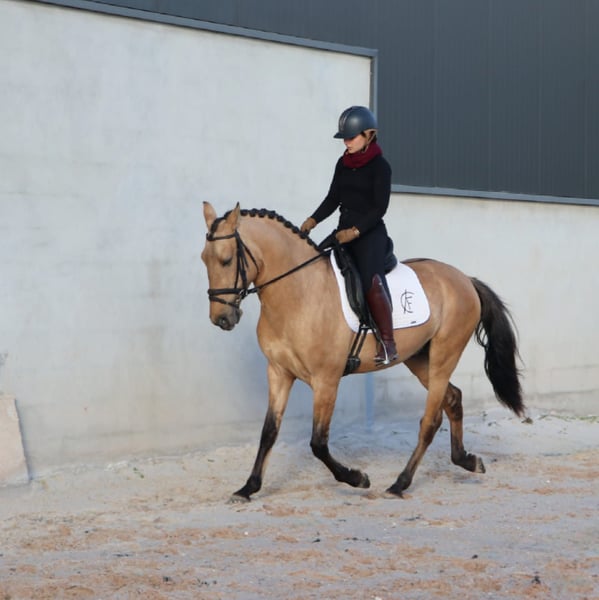 Brillant étalon fauve aux excellentes allures - Race : Lusitanien - Sexe : Étalon - Année de naissance : 2022 - Couleur : fauve (test génétique disponible !) - Taille : 166 cm, taille finale estimée, actuellement 161 cm Nous proposons à la vente un étalon lusitanien exceptionnel, dont les qualités impressionnantes raviront tous les amateurs de cette noble race. Ce jeune étalon ne séduit pas seulement par son apparence élégante, mais aussi par son potentiel prometteur pour le dressage et le Working Equitation. Son talent pour le Working Equitation lui a été transmis par son père ADAGIO, qui a remporté des succès lors de championnats d'Europe et du monde. Avec son pedigree noble et son physique harmonieux, il attire tous les regards et possède également toutes les qualités requises pour réussir dans l'élevage. Si vous êtes à la recherche d'un lusitanien qui convainc à la fois par sa beauté et par ses qualités, cet étalon est le choix parfait. Il peut désormais être formé directement par son nouveau propriétaire cette année. Un vrai diamant brut. Je peux volontiers vous envoyer d'autres photos et vidéos si vous êtes intéressés.
