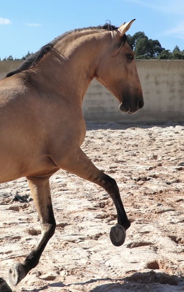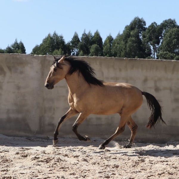 Brilliant dun stallion with excellent basic gaits - Breed: Lusitano - Sex: Stallion - Year of birth: 2022 - Color: dun (genetic test available!) - Height: 166 cm, final height estimated, currently 161 cm We are offering an exceptional Lusitano stallion for sale, who will delight every lover of this noble breed with his impressive characteristics. This young stallion not only impresses with his elegant appearance, but also with his promising potential for dressage and working equitation. His talent for working equitation was passed on to him by his sire ADAGIO, who was successful at European and World Championships. With his noble pedigree and harmonious conformation, he is a real eye-catcher and also has all the prerequisites to be successful in breeding. If you are looking for a Lusitano that impresses with both his beauty and his qualities, then this stallion is the perfect choice. He can now be trained directly by his new owner this year. A real diamond in the rough. I can send you more pictures and videos if you are interested.