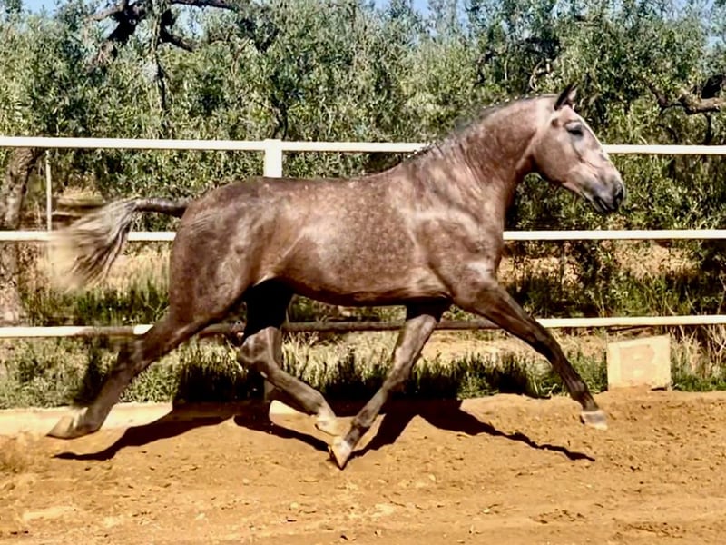 Dieses Lusitano-Hengstfohlen ist ein Tier, das überall auffällt, wo es sich aufhält, denn es war bereits Sieger in mehreren morphologischen Wettbewerben. Er wurde 2021 geboren und ist 161 cm groß. Er beginnt gerade mit der Dressur und arbeitet bereits mit dem Sattel am Seil. Aufgrund seiner elastischen und energischen Bewegungen wird er ein sehr guter Dressurhengst sein.