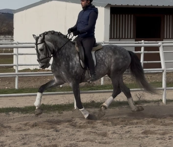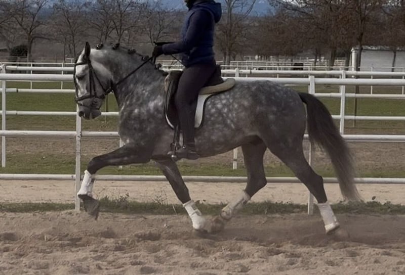 **Lusitano Semental 2021 – Tordo rodado, 162 cm. Hermoso ejemplar de la raza Lusitana, nacido en 2021. Con una alzada de 162 . Su entrenamiento en doma clásica está en marcha, y demuestra una gran capacidad para aprender y responder con sensibilidad a las ayudas del jinete. Para más información o para concertar una visita, no dudes en contactarnos. Este Lusitano es una oportunidad única para aquellos que desean incorporar a su cuadra un semental con gran proyección. ---