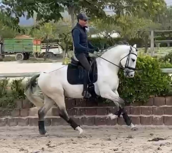 🩵 Prince Charming Romeo 🩵 Lusitano with FEI-quality gaits, an incredibly sweet demeanor, and a great mind for learning. Very willing and easy to ride. Stallion (nothing hot can be castrated after purchase). Healing time here. 4.5 years old Height: 1.65 meters (16.1 hh) Experienced hacking out with other horses in the field and near roads, very easy to understand and lovely behavior. Very calm in the stables and gentle when tacking up and riding. A horse with potential for development at higher levels, thanks to his quality movements and innate talent for brightening in dressage. Very smooth and gentle in transitions. Ideal for advancing to higher levels, with the potential to become a GP horse in the future. Price: €25,000–30,000 + tax in Europe.