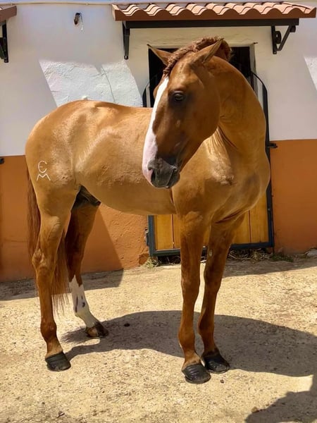 The golden horse 💛 Oro is a piro free 7yro Lusitano stallion with 165cm and a very rare colour genetic, he is a red dun and has full APSL papers. And not only his gold shimmery colour is standing out, his heart is also made out of gold. This horse has such a big heart and noble soul that you fall immediately in love with him. Friendly, calm, patient and very well educated. A complete dream. Absolutely safe and bombproof and a horse to enjoy. Oro is a perfect choice for working equitation, shows or classical dressage. He has normal movements. He is doing lateral work, flying changes, piaffe. He is located in Spain 🇪🇸 More informations over PM or WhatsApp 00491786997334. Jasmin from Top-Lusitanos🤗