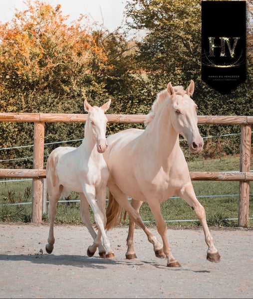 Unser wunderbarer Cremewallach, geboren am 5. Mai 2025 aus der Verbindung von Ouro JLC & Neyge Des Ocres (von Campeador CSM), ist zur Reservierung verfügbar ✨️