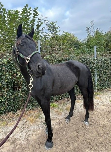 Beauty est une magnifique Lusitanienne de 155 cm (née en 2012). Nous la possédons depuis 5 ans. Durant cette période, elle a appris à sauter jusqu'à 90 cm et a participé à de nombreuses compétitions de saut d'obstacles. Elle adore aussi les balades en forêt. Ayant déjà été en centre équestre, elle s'entend bien avec les enfants. Elle voyage bien, s'entend bien avec le maréchal-ferrant et est facile à monter. Elle peut être un peu sensible à la monte et serait donc idéale pour une transition du poney au cheval, ou pour une relation mère-fille. Malheureusement, elle présente des signes précoces d'arthrose (radiographies disponibles), mais elle est encore apte au travail, aux balades en forêt, à l'entraînement et aux petits sauts.